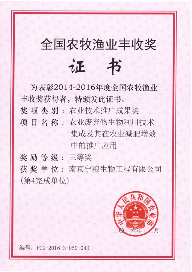 南京寧糧生物工程有限公司(以下簡稱“公司”)是專業(yè)從事農(nóng)用微生物菌劑、有機(類)肥料、復合微生物肥料、水溶肥料、土壤調理劑、重金屬葉面阻控劑等產(chǎn)品的研發(fā)、生產(chǎn)、銷售和服務的高新技術企業(yè)。公司占地200余畝。 公司擁有先進的生產(chǎn)、檢測設備與管理規(guī)范的生產(chǎn)基地。與南京農(nóng)業(yè)大學、江蘇省農(nóng)業(yè)科學院、中科院南京土壤研究所等科研院校建立了緊密的產(chǎn)學研合作關系,在南京農(nóng)業(yè)大學和江蘇省農(nóng)科院設有“寧糧”獎學金、獎教金和獎勵基金;擁有多個研發(fā)平臺并建有江蘇省研究生工作站;聘請了多位科研院校的教授專家為公司的技術顧問和技術指導。公司現(xiàn)已是中國有機(類)肥料生產(chǎn)技術創(chuàng)新戰(zhàn)略聯(lián)盟核心企業(yè)、江蘇高校協(xié)同創(chuàng)新中心有機固...